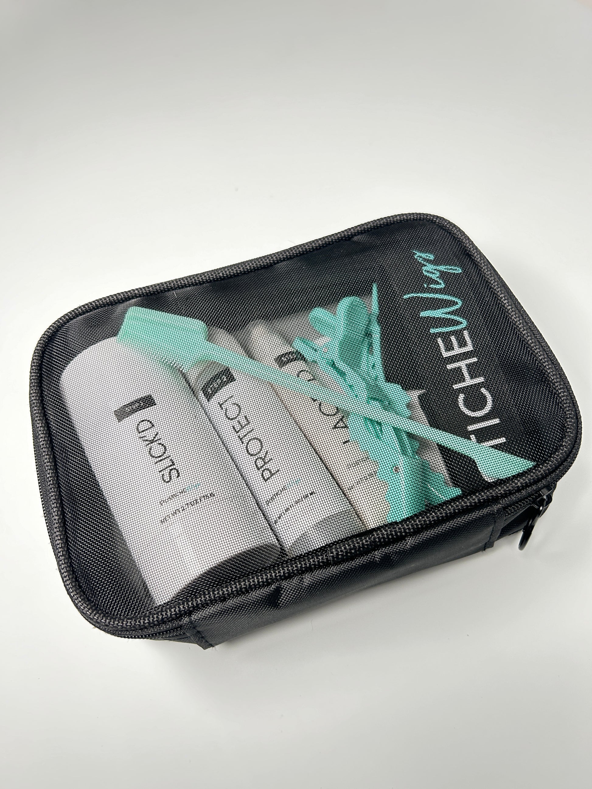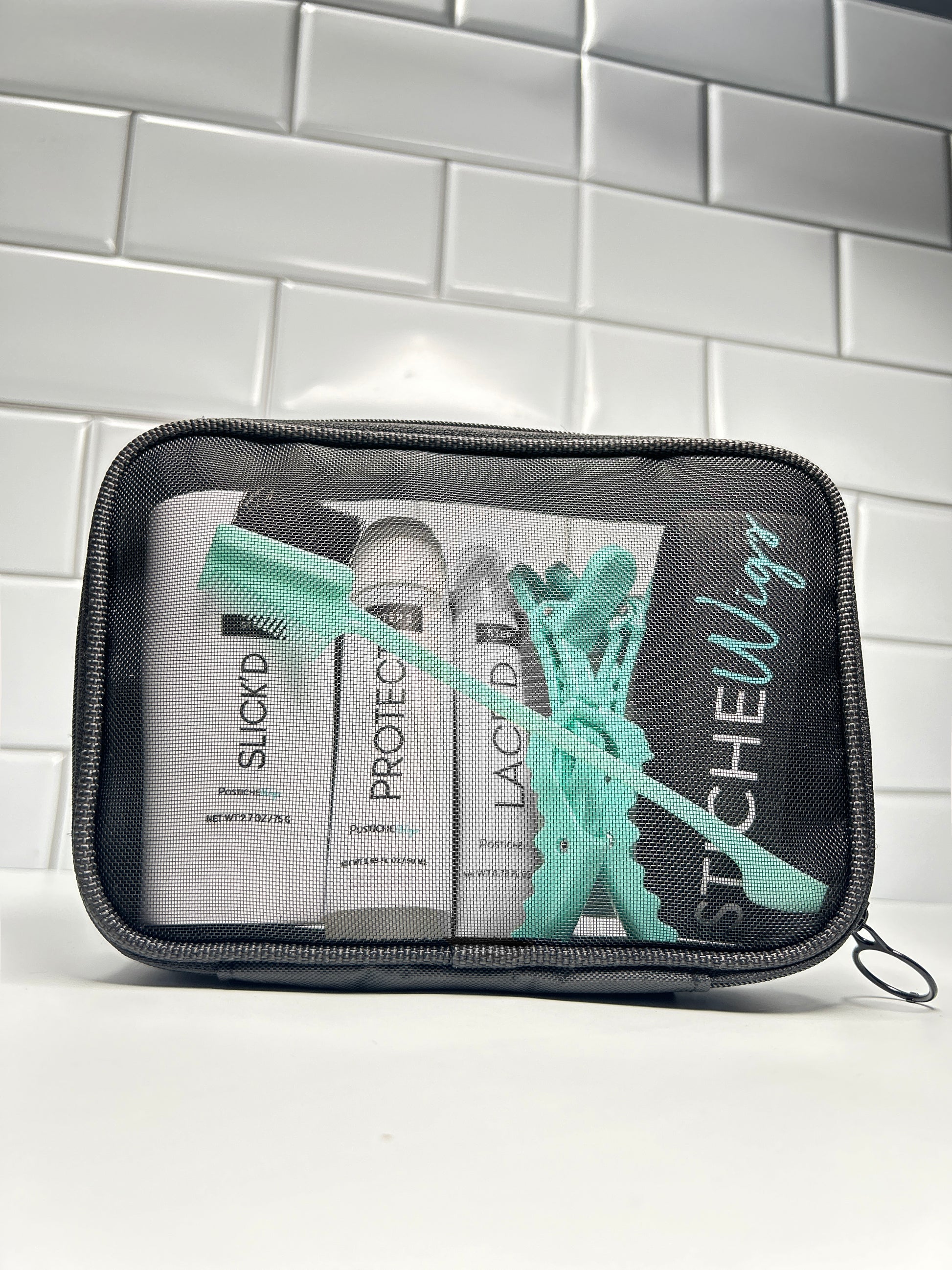 Introducing my Lace Wig Install Essentials Bundle—your perfect travel companion for flawless installs on the go! This bundle includes seven must-have products for long-lasting hold, all packed in a sleek, TSA-approved pouch. It’s designed to fit right into your purse or backpack, making it easy to keep your lace wig looking perfect wherever you are. With these essentials, you’ll get weeks of secure hold and confidence that your style is always on point. Say goodbye to bulky kits and hello to compact, travel-friendly beauty!