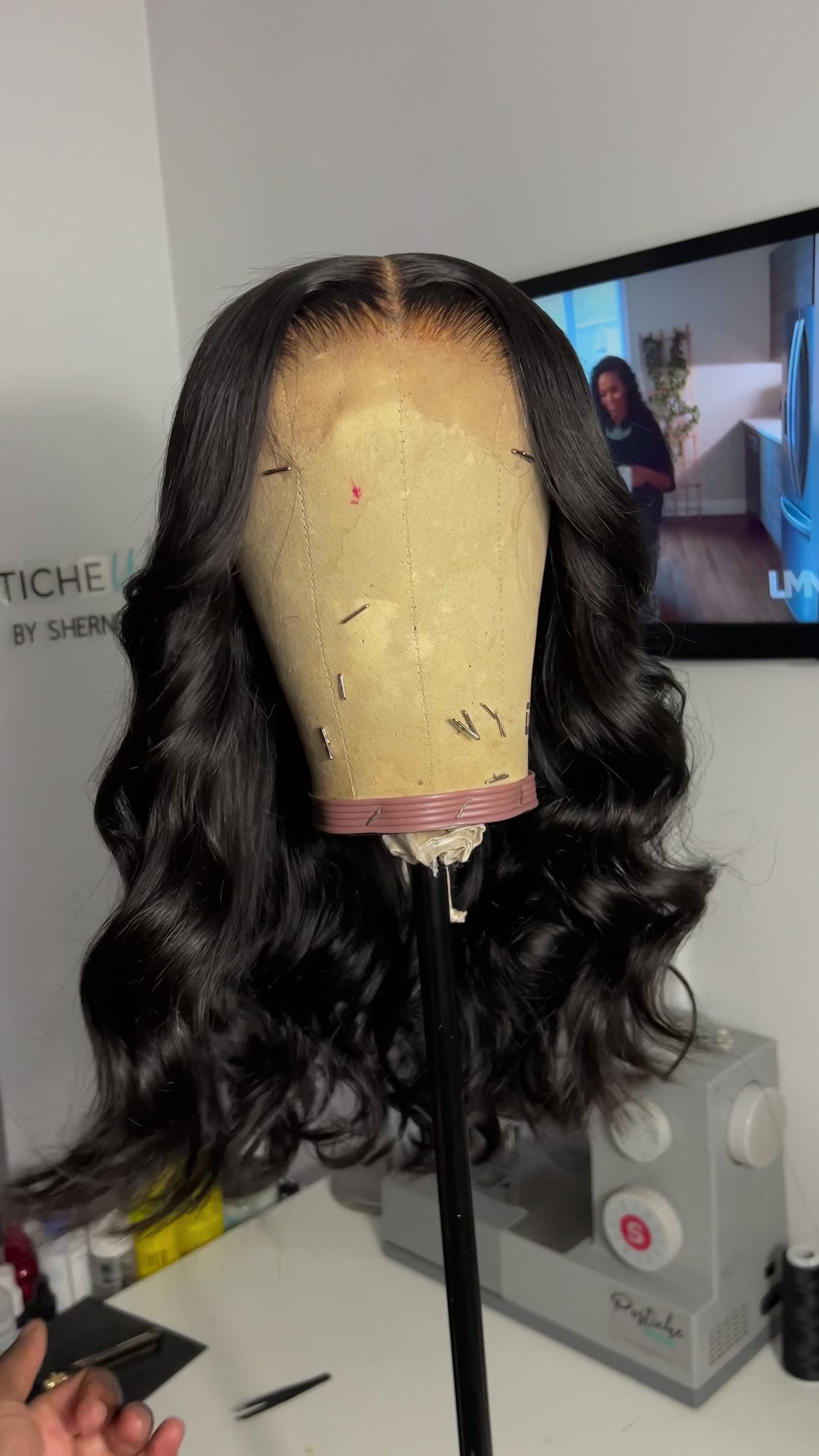 Monica a 100% human hair wig features three body wave bundles and a 5x5 HD lace closure, styled into elegant loose deep waves. It provides styling flexibility, suitable for use with lace glue adhesive or worn glueless for enhanced comfort. Constructed on a breathable ventilated dome cap, it includes one nape clip and an adjustable band for a secure, customized fit.