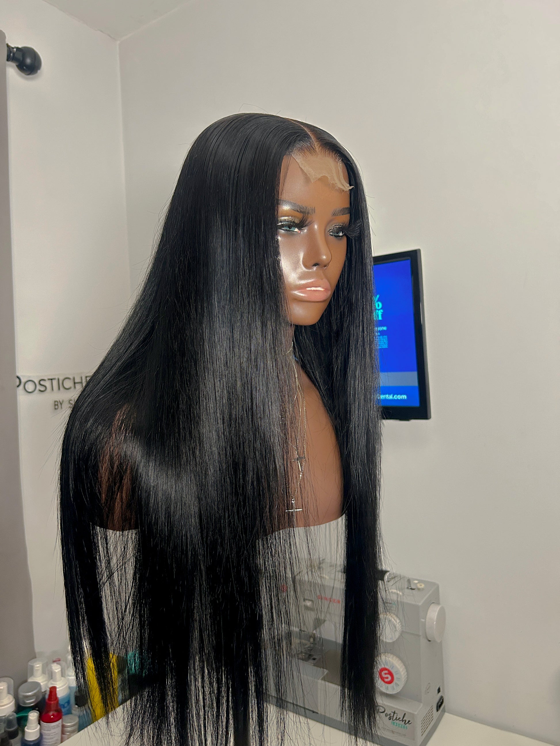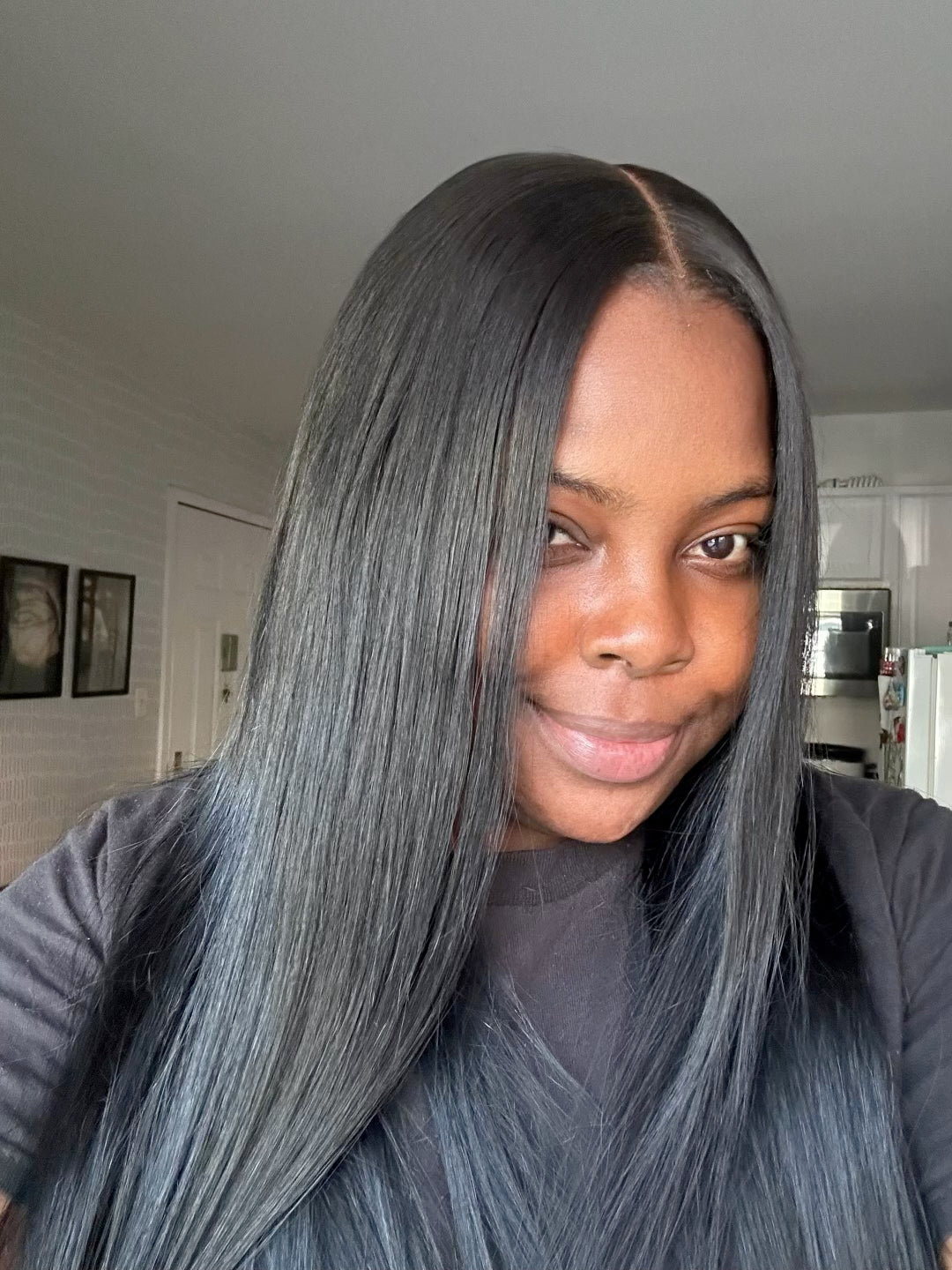 Nova, made from four silky straight bundles paired with a 2x6 HD lace closure, this 100% human hair wig features a chic winter-ready buss down middle part. It provides styling flexibility and can be worn with lace glue or glueless for enhanced comfort. Constructed on a ventilated dome cap, it includes one nape clip and an adjustable band to ensure a secure fit.