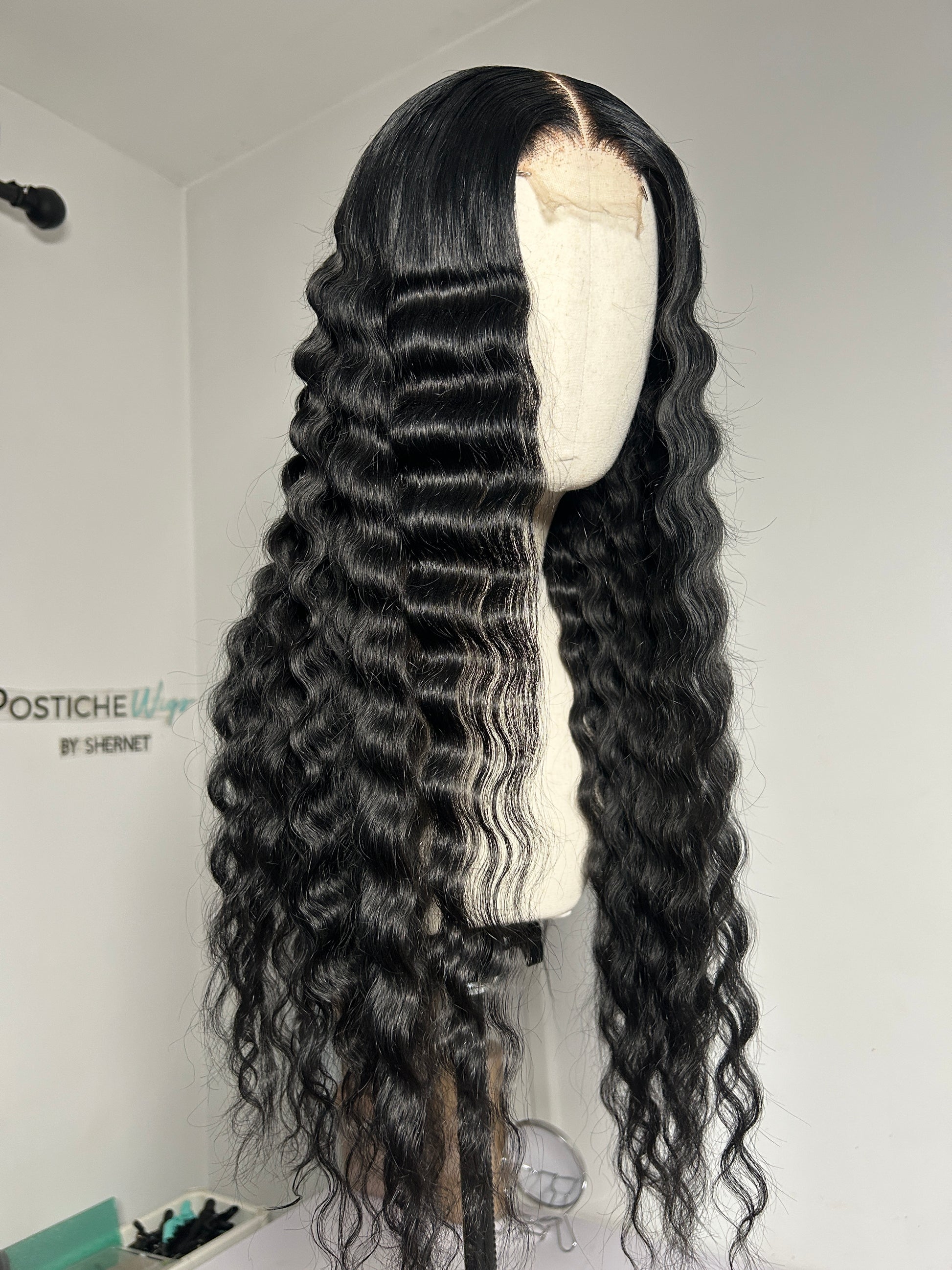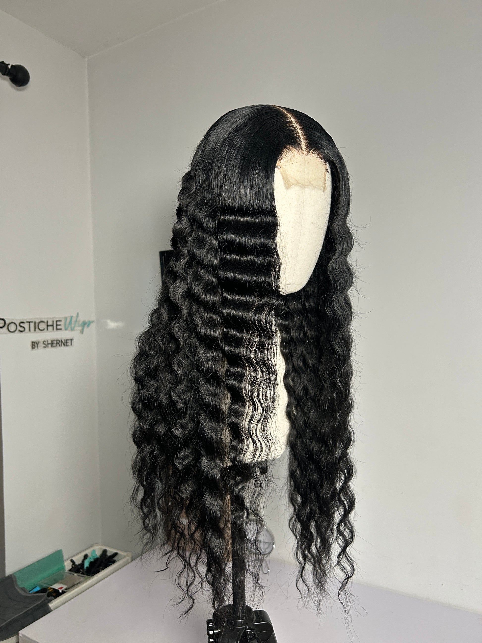 Olivia features four body wave bundles paired with a 2x6 HD lace closure, styled with rich, textured crimps. This 100% human hair wig provides flexibility, allowing wear with lace glue or in a glueless style for enhanced comfort. It is constructed on a breathable ventilated dome cap which includes one nape clip along with an adjustable band for a secure, customized fit.